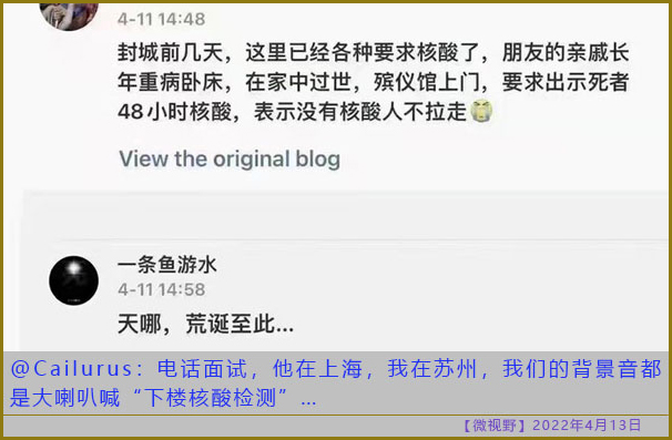 上海重大疫情爆发以来,民间出现了很多发人深省的新段子,看似轻松、调侃、搞笑,其实其中包含了太多的无奈、痛苦,甚至愤怒。