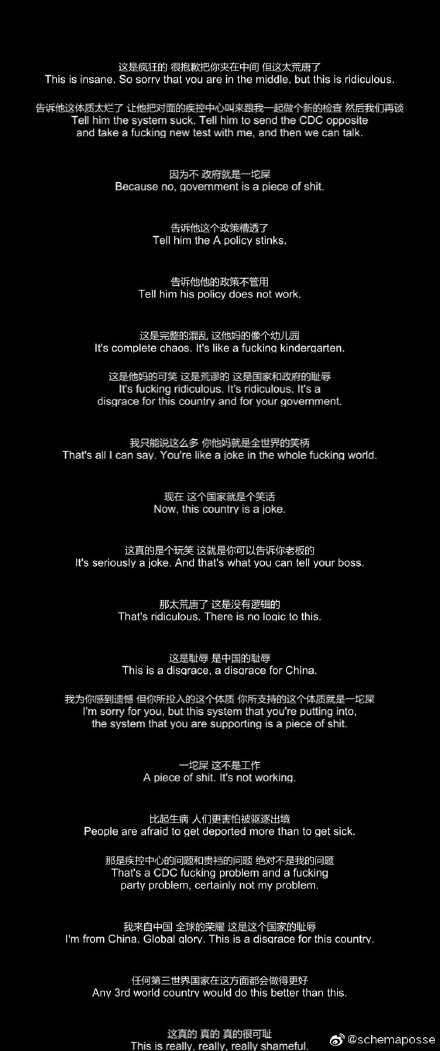 我女鹅初雪今天也摸鱼了呢:4/3测阳性,去了方舱又被丢回来,个么过了十几天阴性了,全家都阴性了,要抓人去方舱,能把一个德国人逼到讲这么优美的英文的地步也是很不容易的,贵偷着口国做到了。