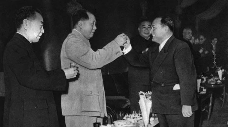 (毛泽东等人出席阿尔巴尼亚解放60周年招待会)