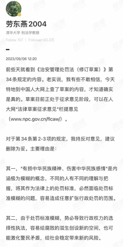 前些天就看到《治安管理处罚法(修订草案)》第34条规定的内容。老实说,我有些不敢相信,今天特地到中国人大网上查了草案的内容,才知道确实是真的。草案目前正处于征求意见阶段,可以在人大网“法律草案征求意见”栏提意见(www.npc.gov.cn/flcaw/)。