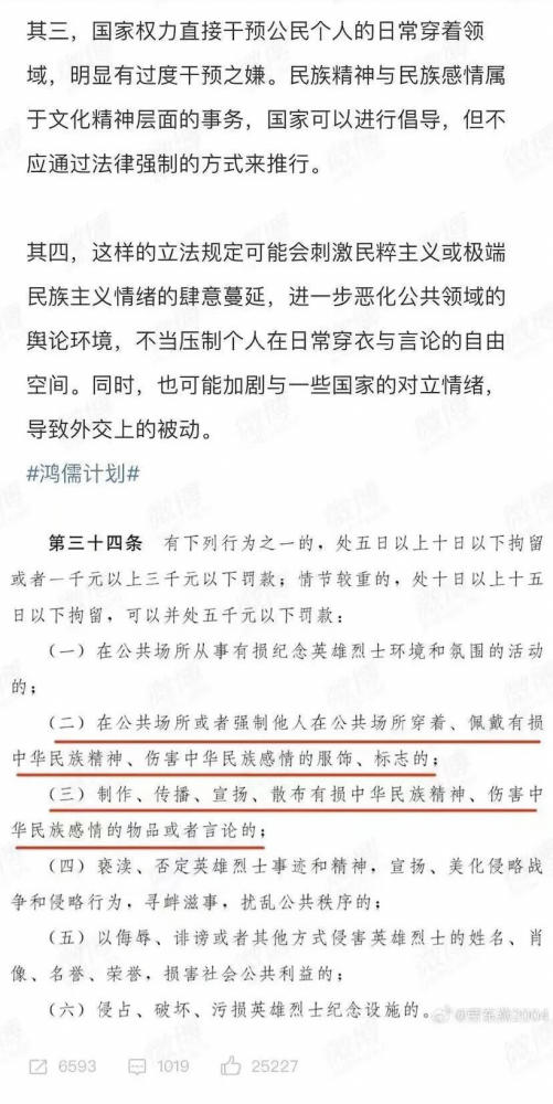 还有,中华民族精神并没有明确的定义。中国有14亿人口,伤害多少人的感情算是伤害中华民族感情?一百人,一万人,还是1亿人、10亿人?