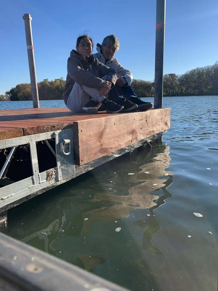 不喜欢出远门的我们,趁天气晴朗,气温也不算太低,开车20分钟,到湖边走走。秋色正浓,跑步,骑车,步行的人非常多。我们走到栈桥上,撒了一把玉米,想看鱼。没看见鱼,看见了一只乌龟。