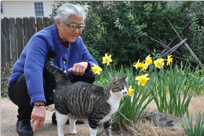 妈妈去世前几天,我去理发店把头发剪短了,把剪下来的头发拿给妈妈看。可是没几天妈妈就去世了。我说我再把头发留起来,3年不剪。这是前天拍的。