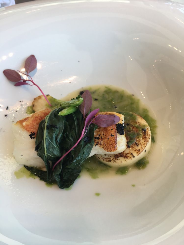 主要是鳟鱼。绿色的汁是用当地大葱做的。非常好吃 。