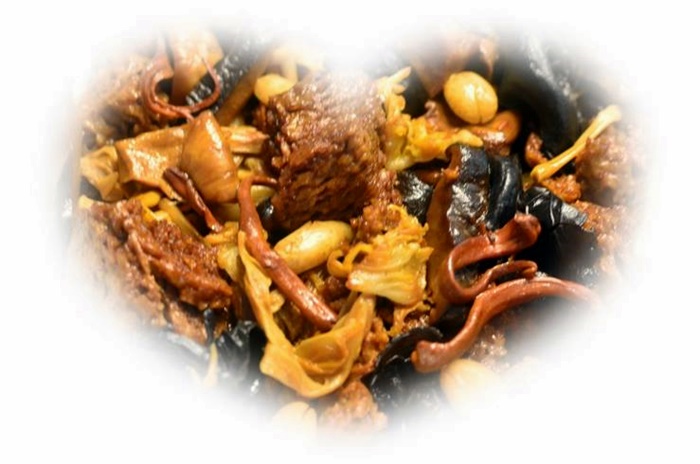 什景烤麸:和上次做的上海四喜烤麸差不多,这次东西放得更多,各种菇,虫草,白菜芯。