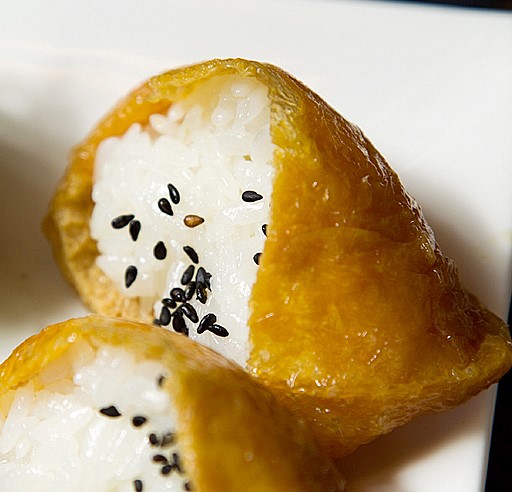 豆皮寿司:买的专门包寿司的腐皮,一共没几张,以后也可以考虑自己做。日本米,煮好,等凉,加日本醋半勺,塞进去,撒熟芝麻。