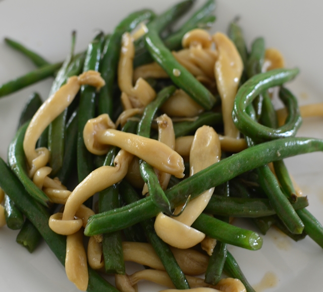 领导做的豆角炒金针菇,一看就是他的风格。:)先把豆角炒差不多,我们一般不放油里炸,情愿加鸡汤煮软,再加金针菇,可以稍喷黄酒,去一点金针菇的味。