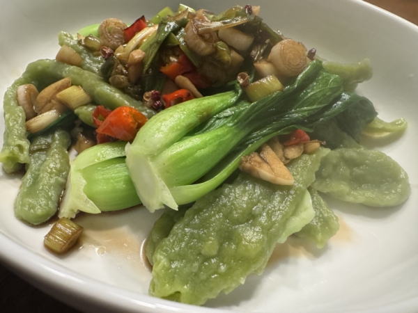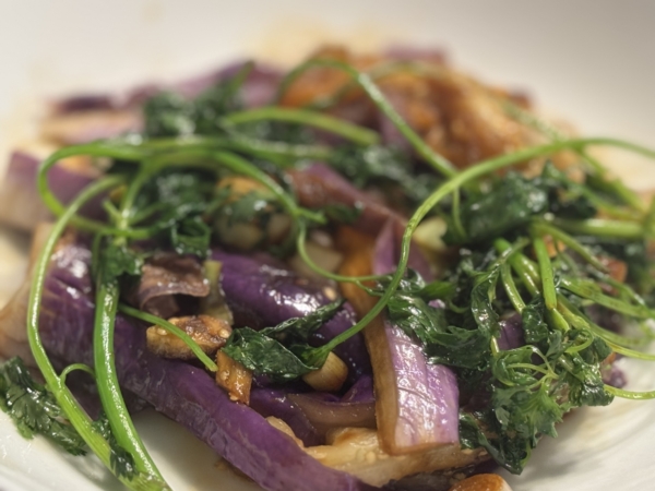 地瓜叶,蒜油里爆香,放进去炒。网上查了下,地瓜叶富抗氧化物,富含钾质和植化素,有助于稳定血压,降低胆固醇,控制血糖。