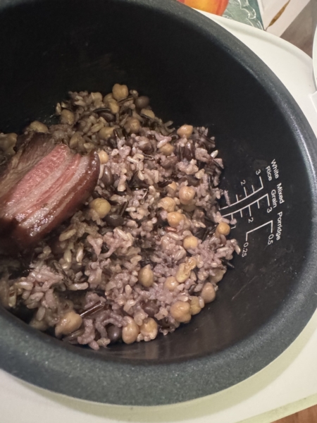 我家用的是迷你的日本电饭煲,原来怕豆和米在一起煮不烂,现在用日本电饭锅的mixed档,做前一起泡三个小时,或者单独泡豆。米没问题。