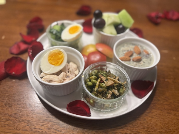 这是女儿回来给她做的健康早餐: