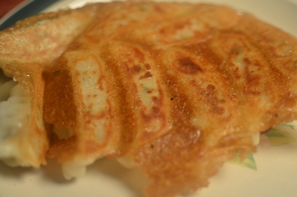 不加一滴油,放水煎的日式冰花饺子,比较素的,里面有一点点肉。给的蘸料味道也不错。
