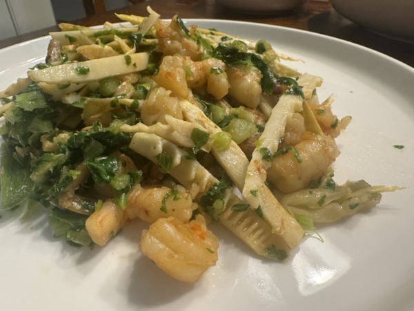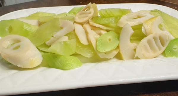 双笋片,莴笋和笋,学在中国吃的。可惜这笋是冷冻的。不过也很清爽。