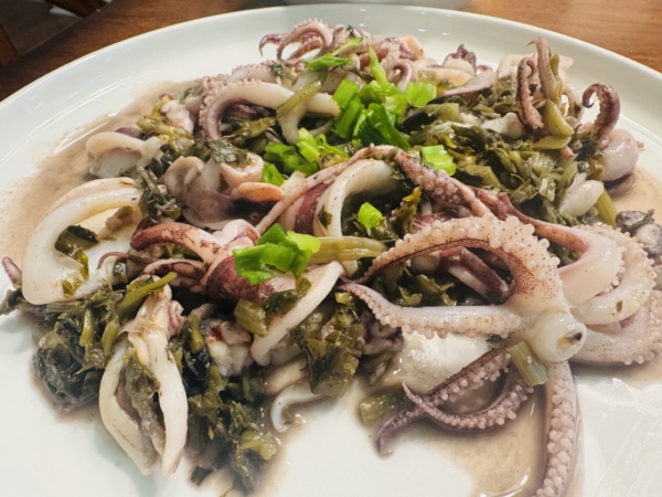 东方店买的小墨鱼,炒雪里蕻咸菜,这个咸菜是袋包装的,又嫩又鲜。