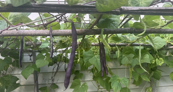 另外自己种的蔬果,咋吃都好吃。像彩烟游士这种农民专家,天天种,天天有得吃。朋友也喜欢当农民,自己种了不少,我还从她那里移了韭菜。其实刚来美国的时候,我家后院弄了块韭菜地,韭菜长得特别好,朋友还到我家里来移植呢。后来因为LD拔野草不勤,韭菜地开始荒,现在准备接着弄起来。看看朋友自己种的蔬菜,上次给我的是营养更好的紫土豆。