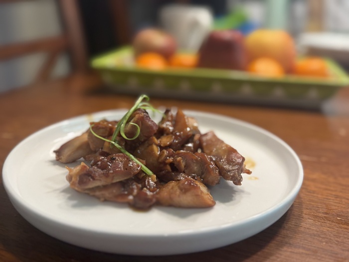 偶尔呢也会用这个Teriyaki chicken 配米饭,我也是会加一点点酱油,这个有点偏甜。