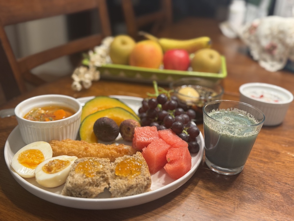 每天吃得还是比较简单。周末稍微会多做一点。最近在脸书上加入了一个健康早餐的群,看大家天天记录健康早餐,我也弄了几天。