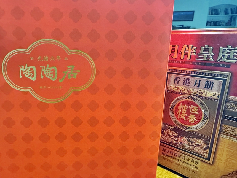 我买了2盒送人,自己做了苏州月饼,肉太柴;也做了几个冰皮月饼,昨晚吃了,留了2个准备今天早上给儿子媳妇临走时吃,结果我忘记了,中午才记得今天是中秋节:)