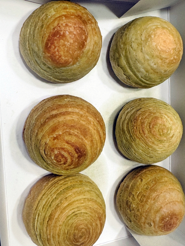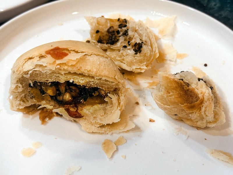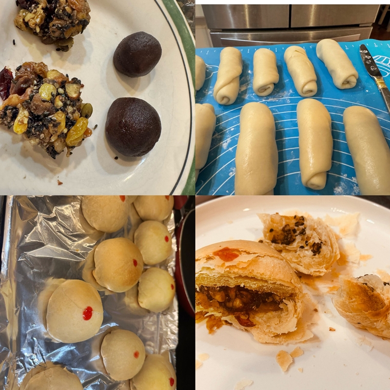 一次是自己做的皮,另一次用的是买的puff pastry ,倒是省事一点,但没有油皮,酥皮的层次感,也有点油。自己做的就好很多,也健康一点。