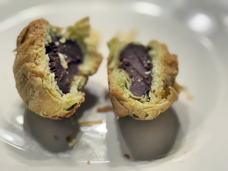 “头一次听说‘酥皮月饼’,应该是你和你的朋友们的创意吧?”,酥皮就是苏式的,一次自己做的皮,另一次用买的puff pastry,自己做的酥皮更有层次感,不油一些。