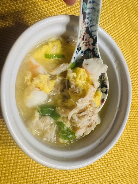 做的蟹肉,虾海鲜羹,勾芡特意弄稀了一点,不想吃太多的淀粉。