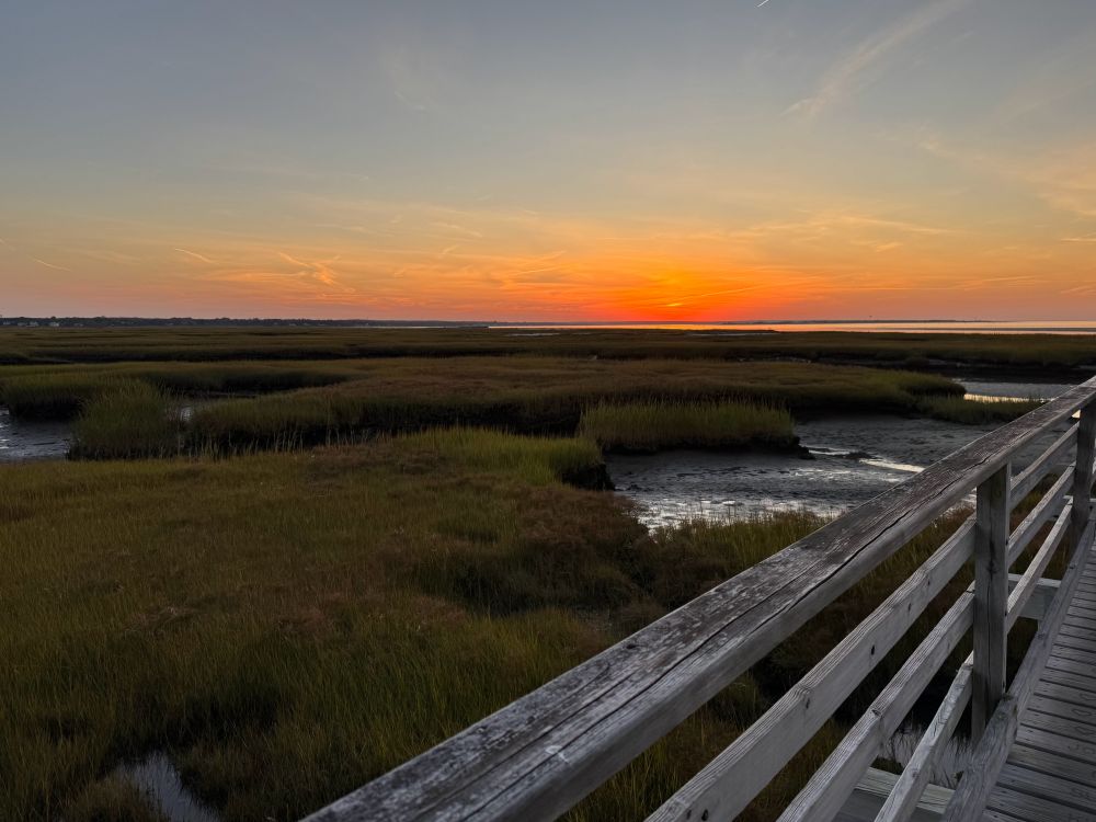 在栈桥上走走停停看看,斜阳下的沼泽与沙滩,散发着白日不曾见过的温柔。