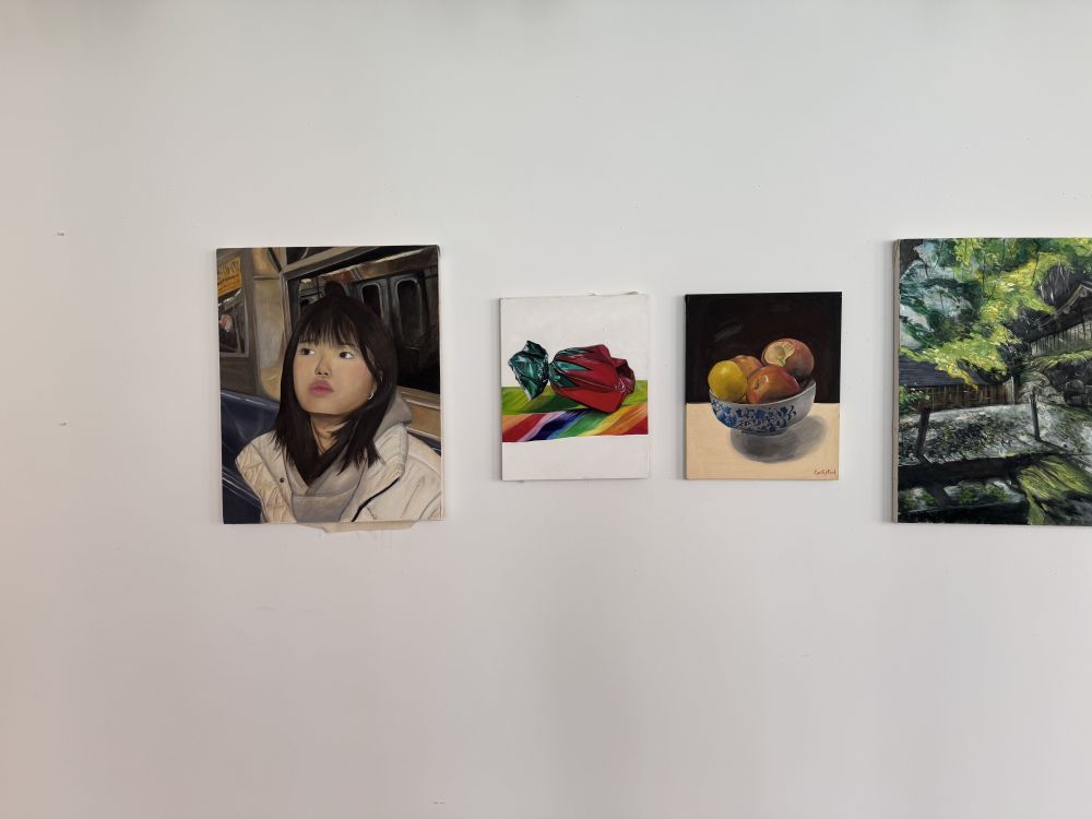 我们还参观了学校的画廊,这里有不少学生的作品。我很喜欢这张画像,不知是不是自画像。