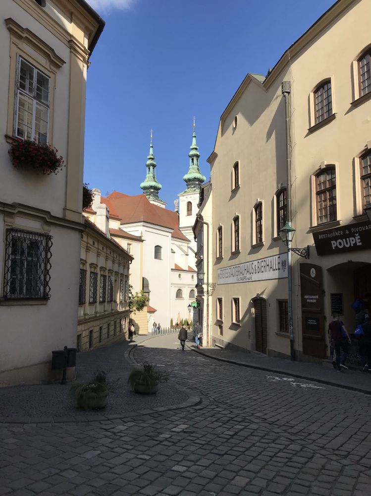 从巷中走出,眼前豁然开朗。建筑大气起来,商店咖啡馆并肩而立。有轨电车叮当驶过,学生骑着单车在人群里穿梭 … 这才想起来,Brno到底也是座像样的大城市。