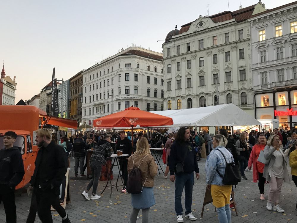 拍照时我特意避开了人群,其实街上挺热闹的,尤其是年轻人特别多。后来才知道,Brno是捷克著名的大学城。捷克第二古老的Masaryk University、被誉为“捷克硅谷”的Brno University of Technology,还有以“遗传学之父”孟德尔命名的Mendel University in Brno,都坐落于此。