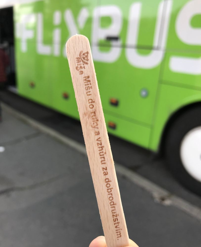 那行捷克语写的是: “拿上一支 Míša,去开启一场冒险吧!” Míša,大概就是我们吃的那个冰淇淋的牌子吧。