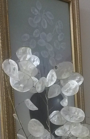 两年前,在一个热爱园艺的朋友家的花园里欣赏花卉,看到不明植物,连忙求教,得知是 Silver Dollar,一听这名字就喜欢。按照朋友的进一步描述,立刻联想到这幅画,觉得画上画的应该就是这个 Silver Dollar。欣喜若狂,当场求了种子。