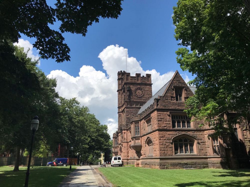 本想出去再看看校园,结果赶上阵雨。姐姐听不大懂英文,决定继续雨中游,给普林斯顿的漂亮建筑照相。