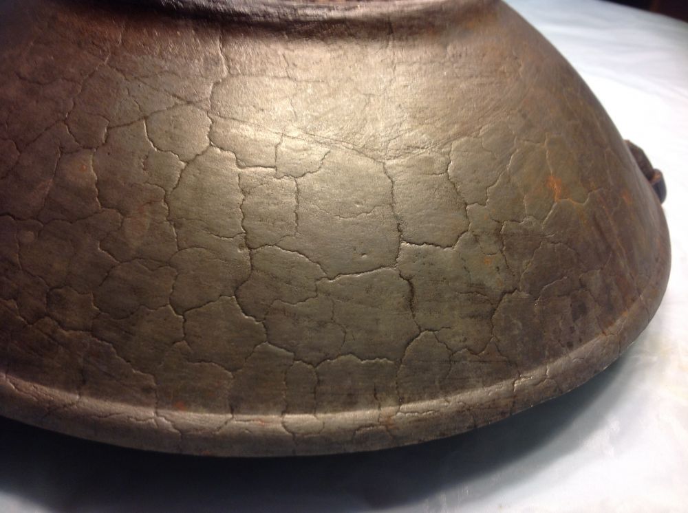 口径16英寸,外面是平底,里面是圆底。里外都有美丽的花纹,内部材质有一万多个马氏体和奥氏体。[