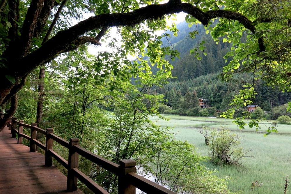 九寨沟一定要赶早或晚,没人的地方如仙境一般。从原始森林徒步下行3公里到熊猫海,很少有人,偶尔遇到一两对情侣小憩,感觉自然和谐。其他地方虽常是人声鼎沸,但毕竟画面在山水之间,尚能保留一份视觉的空间。九寨沟内交通很方便,木质栈道便于游人行走,也方便清洁维护。环保大巴来往频繁,如腿脚利索,一天内可以轻松游览绝大部分景区。