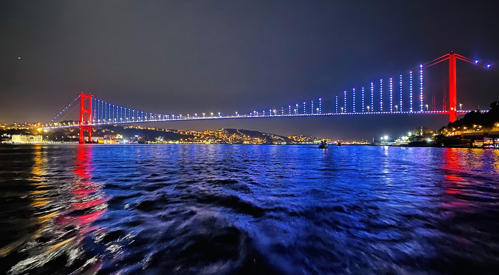 欧亚大陆桥和海峡夜景