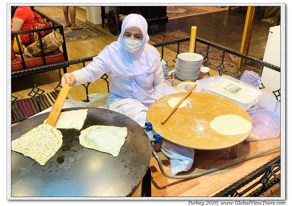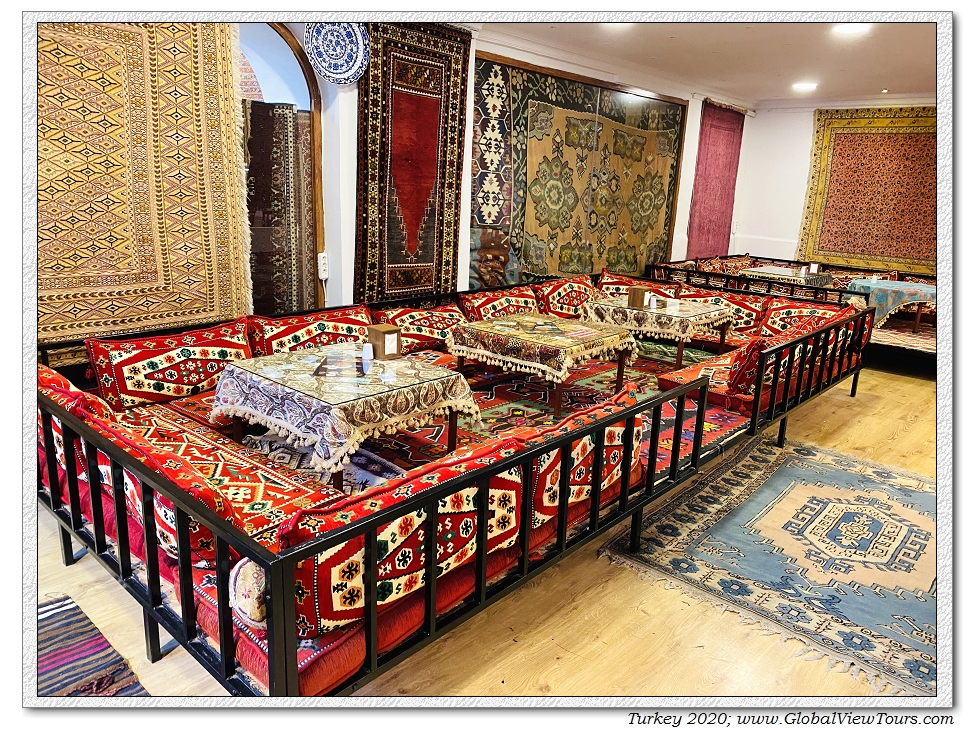 土耳其人最早是1200年代从中亚迁移过来的,属于突厥人的一支。饮食习惯,文化传统与中亚和新疆大致一样。这是餐馆里面的传统座位,像一个大床。去年在中亚和新疆也看到类似的餐馆布置。