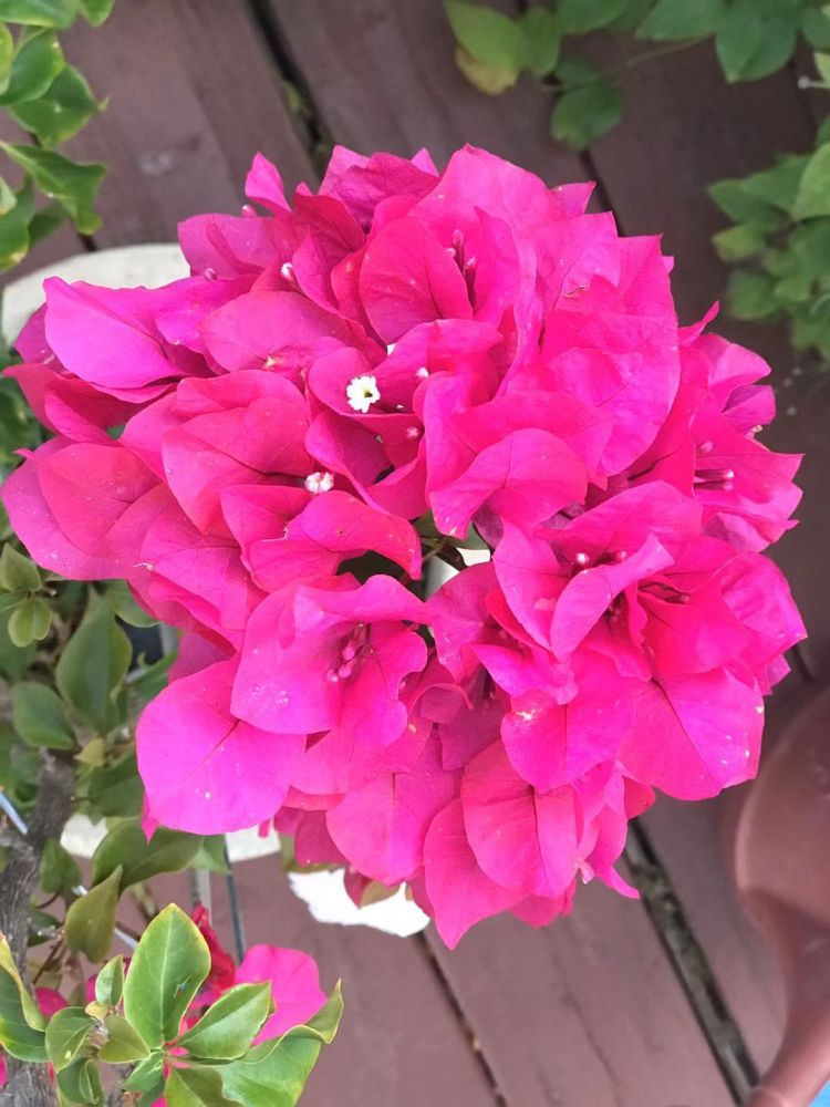 三角梅在热带亚是高大的攀藤植物,开得艳丽非常。在多伦多可以夏季在室外开花,冬季在室内开花。室外开的非常美,但是在室内就是弱弱的样子。