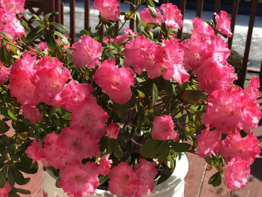 首推杜鹃。在多伦多冬天开花的杜鹃叫azalea. 普通超市有的卖。我养了三盆:、
