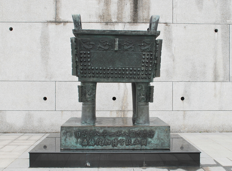买门票,进了门,先得存包,包括照相机。这回好了,什么也照不了;自己看,自己知道就是了,没什么能说的。但还是见到几件给自己留下深刻印象的展品。在一楼图书文献展里,看到了明成祖的《永乐大典》和乾隆文渊阁的《四库全书》;二楼书法绘画展里有数不清的名人的字画,而王羲之的《快雪时晴帖》和黄公望的《富春山居图》,给了我一睹为快的感觉。还有三楼上的镇殿三宝:玉白菜,东坡肉和毛公鼎。毛公鼎不大,只有一尺高,却铭刻了497个篆字的书文,记载了因毛公辅佐周宣王,从而获得天子赏赐而做此鼎的一段史实。