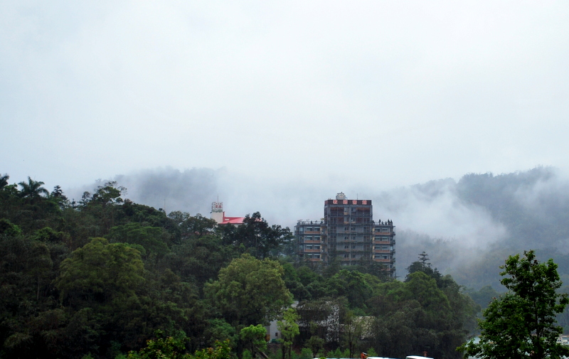 可惜的是一直阴天,细雨不停。待我们到公园汽车总站时,因为山高的原因,摄入眼帘的是一片烟雨,一片云雾。看不到远方的天,看不清近处的山。怎么走,到哪玩,都不知道。这时,一位车站的服务员告诉我们,这里有108路小bus,沿公园的各个知名景点转一圈,每个景点可上下车,最后还回到这儿。有句话说“车到山前必有路”,这里呢,是“有路就有方便车”,收费还只是15新台币(五毛嗳)。