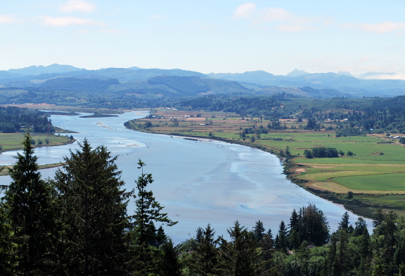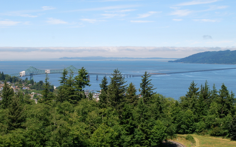 远望哥伦比亚河口和河口上的大桥。这里是河,不是海。桥太长了,通向华盛顿州的局部照不上了。