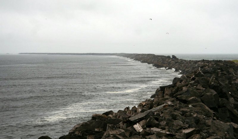 河海相接处的防波堤。这个防波堤叫Jetty,由巨大的石块垒成。它的作用其实不仅是防波,还是防止海里的沙子堆积,形成海边的沙丘。据说,在建立这道Jetty 前,一百多年的时间,海里沙子的沉积,使海岸向海中伸展了一英里之多。