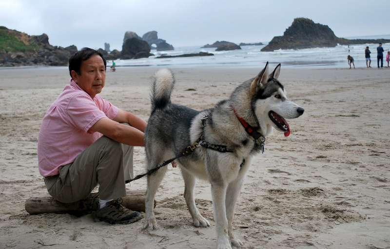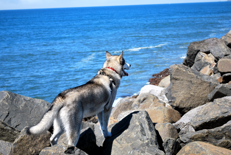我家小狗在Jetty上看太平洋:“和我在北极看到的不一样嘛”。。。