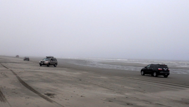 我们把车开到沙滩上,沿着海潮的水线疾驶,享受狂野。