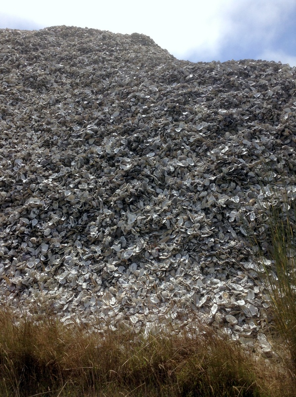 堆积成山的生蚝壳,难怪此地就叫生蚝村Oysterville。