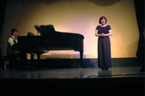 在《青鸟颂和平》的音乐会上,我邀请 Jenny 和我二重唱此曲。