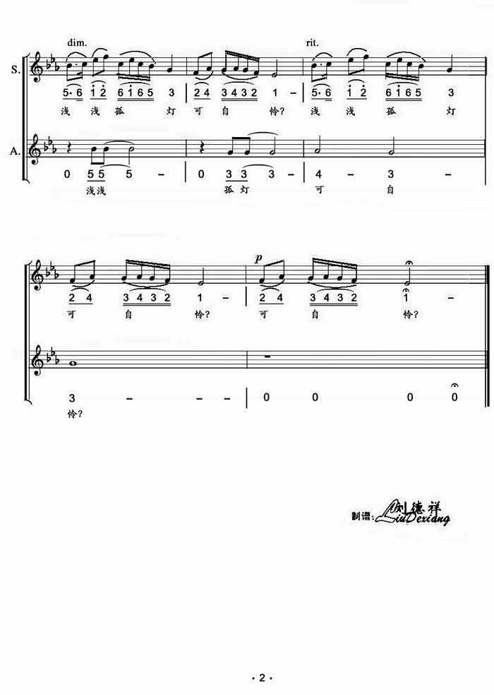 后来因我要求,作曲家又把这首降E调的女声独唱曲改成降E调女声二重唱。二重唱歌曲采用复调的形式,乐曲的旋律古意盎然;音乐和诗歌的意境柔和得天衣无缝。第一次吟唱时,我就非常喜欢。