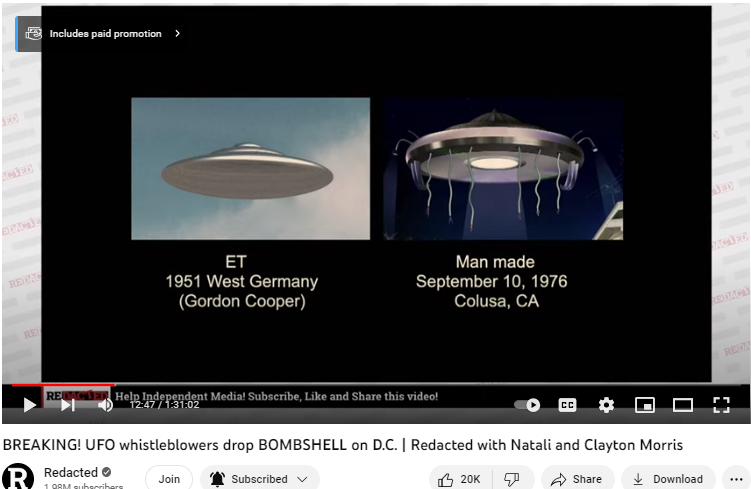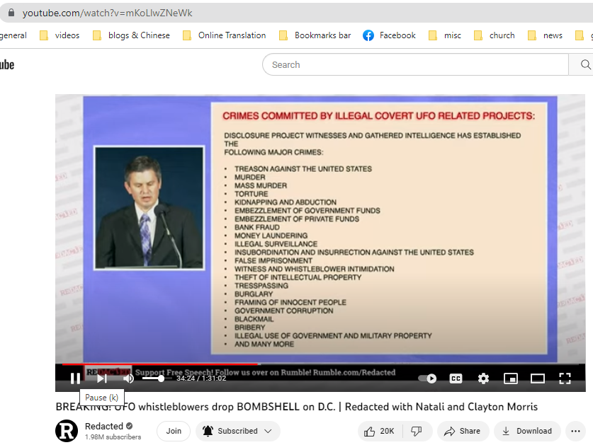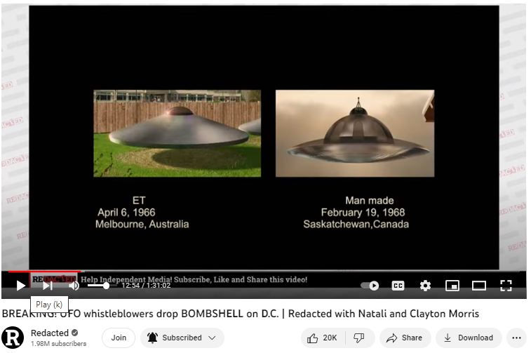 既然说不通,我们暂且把这样的论调搁置一下,来看看最近还有哪些有关外星及人造飞碟的消息。首先来看一下Clayton在6月13日的节目【[1]】中所播放的在DC的著名的Press Club的新闻发布会上的一些片段:
