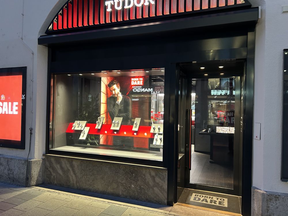 那天下午在墨尼黑城区陪同家人逛商店购物时,正好走到瑞士名表“Tudor”专卖店旁时,还没有反应过来,就被突然涌来的人流挤着走向前方。只见人流几乎是人手一部举过头顶的手机,忙于拍照、录像。这才发现“Tudor”专卖店的大门早已被保镖人士Block住了,任何人都不能进出,一辆车窗漆黑的大型SUV直接停在店门口,车上走出来的是“世界足球先生”,大名鼎鼎的前足球巨星贝克汉姆。他只是简单的挥一下手,就立即进入了专卖店。原来贝克汉姆与他代言的“Tudor”,今天在这专卖店有一个互动的商业活动。看见这些粉丝的遗憾神情,居然错过了能在店里与名星贝克汉姆合影签名的大好时机。我原就不是追星人士,今天被挤去追一次星,也是难有的机会,就像世间俗语的说辞,也算是“过了一把瘾”吧。不过遗憾的是,没能预先进倒商店里,或许有机会与贝克汉姆合一影。