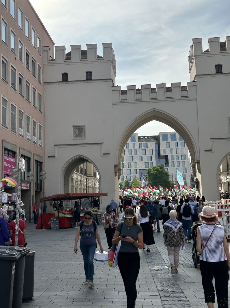 刚从贝克汉姆的热潮中走出来,又被从前面喷水广场传来的振耳口号声震惊,只见不少警察都向着广场小跑而去。原来是申援巴勒斯坦、谴责以色列暴行的民众,正聚集在广场举行示威活动。当然有示威者,就必有反对者,冲突总是很难避免的,所以需要很多警察居中隔离两派。生活在自由世界,如果不能表达自由的声音,那就肯定就不是自由世界了。为避免不可预料的麻烦,我们立马绕道而行。这样的热闹,当是不凑为好。