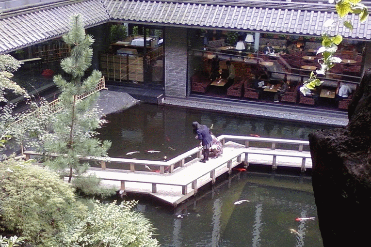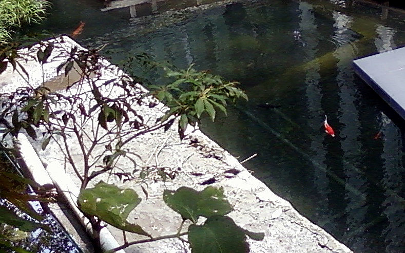 会所庭院里,小桥流水人俏佳,水中的鱼一眼便看得出非等闲之鲤,色泽光亮,条纹考究,雍容华贵,比起一般公园池塘里的鲤鱼,明显就是高出身,高学历,高档次的。。。总归是拿字儿无法形容其贵族素质来的。